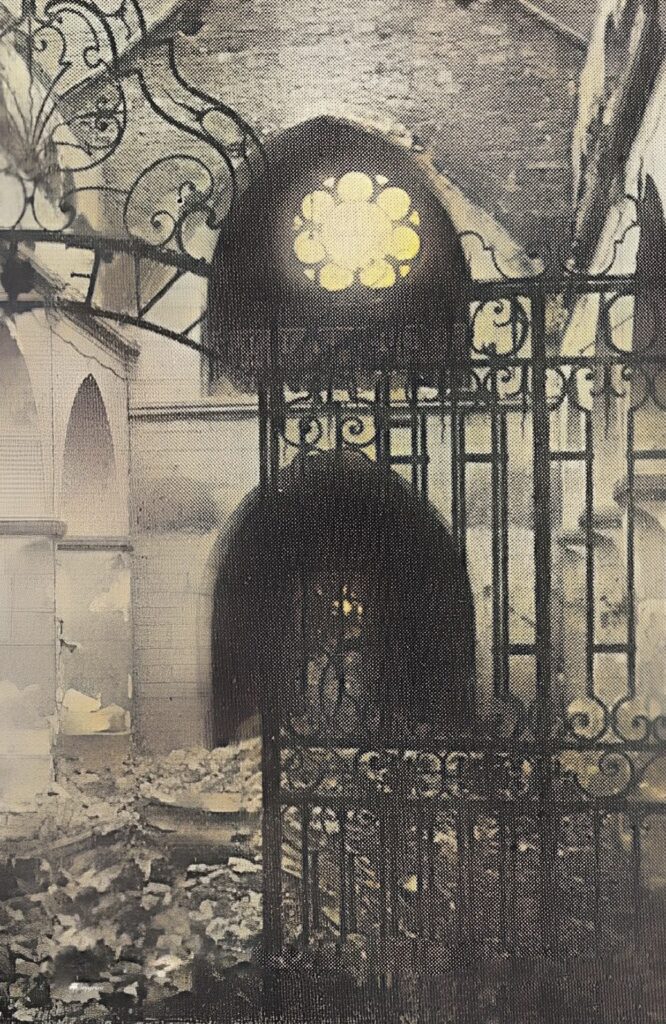 - Après le pillage de la ville, l’église a été canonnée et démolie.