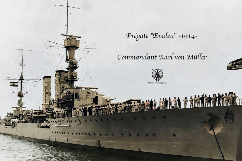 Le capitaine Karl von Müller, commandant du croiseur SMS Emden, fut fait prisonnier après la défaite de son navire face au croiseur australien HMAS Sydney, puis échoué lors de la bataille de Cocos, le 9 novembre 1914. Il resta prisonnier de guerre jusqu’à la fin du conflit. Son père était un colonel à la retraite de l’armée prussienne.