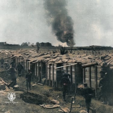 Sur cette route, nous nous sommes d'abord retrouvés le 4 octobre devant le Fort Waelhem au nord de Malines. Même si les Belges se défendirent héroïquement, -on ne peut que reconnaître la ténacité des Belges-, qui auraient eu à leurs côtés 30 000 à 40 000 Anglais. Tant de forts de la ceinture extérieure étaient tombés sur une largeur de 13 kilomètres. Le feu pouvait donc être ouvert sur la ligne de forts intérieure sud, peu défendue, en particulier les forts IV et V. Notre artillerie lourde se trouvait ainsi à 18 kilomètres seulement des points importants de la ville. Le 7 octobre, le fort de Broechen tomba sur le front est, et pour la possession de la Rethe et de ses rives marécageuses, qui se séparent de cet ouvrage pour rejoindre le fort de Waelhem susmentionné, on se battit avec acharnement toute la nuit au clair de lune, prenant à l'ennemi, belge et anglais, 4 batteries lourdes, 52 canons de campagne et de nombreuses mitrailleuses. En outre, pendant ces nuits de combat, un zeppelin apparaissait généralement au-dessus de la ville, qui était durement attaquée, et ses bombardements augmentaient encore la peur de la population.