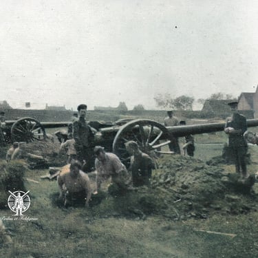 Tant d'hommes de leur armée - c'est peut-être vrai, et je préfère ne pas dévoiler de secrets de guerre - sont en route - all with big guns-, disaient-ils, et quelques personnes qui les comprenaient traduisirent la bonne nouvelle à la foule : tous avec de gros canons ! et puis le peuple s'est remis à applaudir les Anglais. Mais vers huit heures, le tonnerre des canons recommença, et le reflet du feu était visible jusqu'aux rives de l'Escaut. L'artillerie allemande n'avait jamais été aussi proche auparavant."