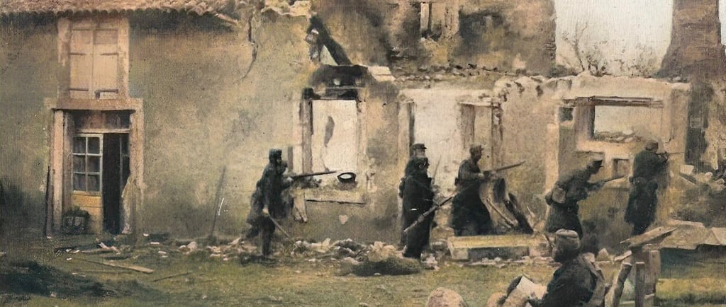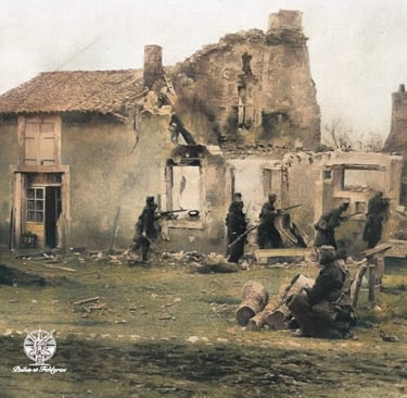 Nos progrès dessineront cette hernie qu'il faudra quatre ans pour la réduire. Parmi les localités reprises de haute lutte au cours de notre avance, de part et d'autre de la route de Verdun à Metz, Ville en woëvre fut une de celles qui eurent le plus à souffrir de l'acharnement de l'ennemi.