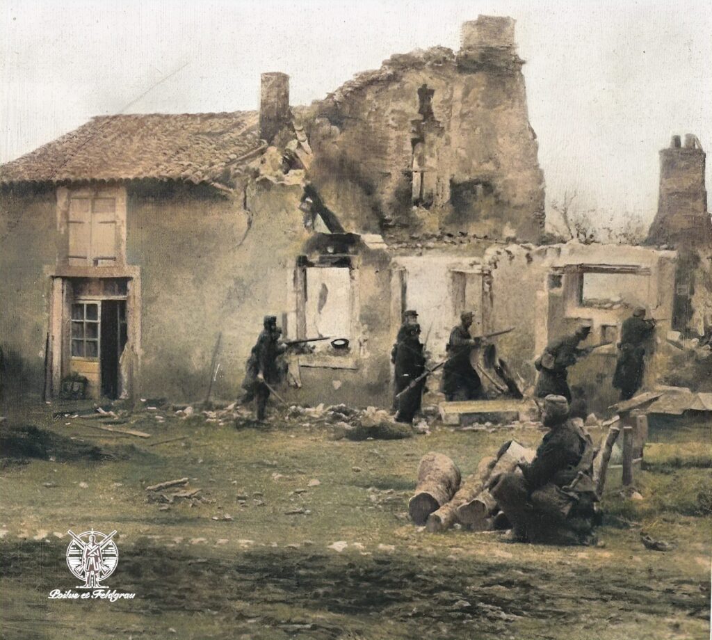 Nos progrès dessineront cette hernie qu’il faudra quatre ans pour la réduire. Parmi les localités reprises de haute lutte au cours de notre avance, de part et d’autre de la route de Verdun à Metz, Ville en woëvre fut une de celles qui eurent le plus à souffrir de l’acharnement de l’ennemi.