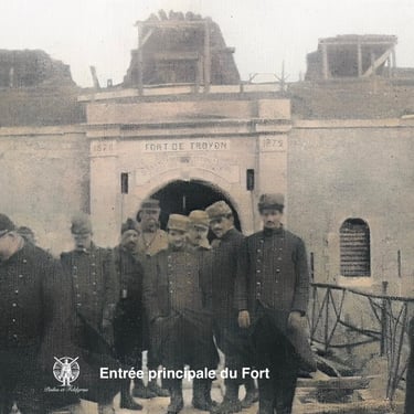 Attaqué depuis le 6 septembre par le kronprinz impérial, le Fort de Troyon reçoit du 8 au 11 septembre 1914 une effroyable pluie de fer. Le 11 au soir, nos troupes hissaient magnifiquement le drapeau français sur ses ruines pour saluer la retraite de l'ennemi devant Sarrail.