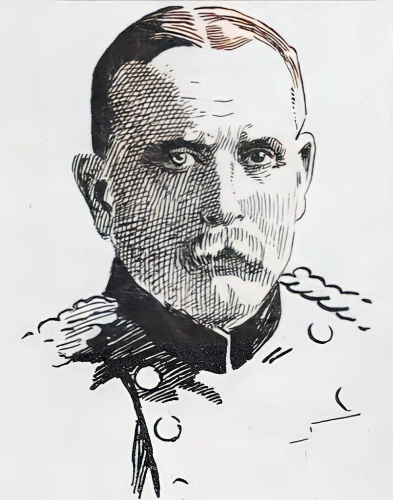 Le commandant en chef des forces anglaises débarquées en France, le général Sir John French (né en 1852 dans le Kent), venait en réalité de la marine, où il servit jusqu’en 1874. Mais le jeune marin devint soudain un officier de cavalerie téméraire qui se distingua lors des campagnes du Soudan et, à son retour, commanda le 19e régiment de hussards. En 1897, French fut ainsi honoré pour son poste actuel de major-général et commandant de la 2e brigade de cavalerie. Au début de la guerre des Boers, il se rendit en Afrique du Sud à la tête d’une division de cavalerie et, par ses actions habiles, contribua grandement à l’issue favorable des forces anglaises lors des violents combats d’Elandslaagte. Là, après une résistance héroïque, la Légion allemande du colonel Schiel, combattant aux côtés des Boers, périt également, ce pour quoi Botha exprime aujourd’hui sa gratitude de manière singulière.