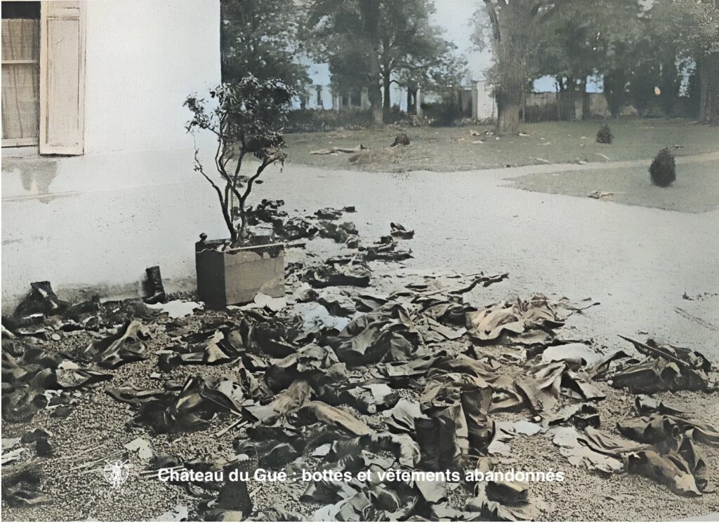 Une ambulance allemande était installée au château ; les hommes qui y moururent ont été enterrés dans le parc. Leurs bottes et leurs vêtements souillés jonchent le sol