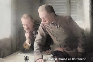 Après l’ultimatum rejeté par les Serbes, l’armée autrichienne commence à envahir la Serbie. La Serbie, sage et pacifique, s’est inclinée devant l’ultimatum, sauf en deux points accessoires sur lesquels elle demande des précisions. Néanmoins, le 25 juillet à 6 heures du soir, le ministre autrichien quitte Belgrade, rompant brutalement les relations. Le 27 juillet, Belgrade indéfendable