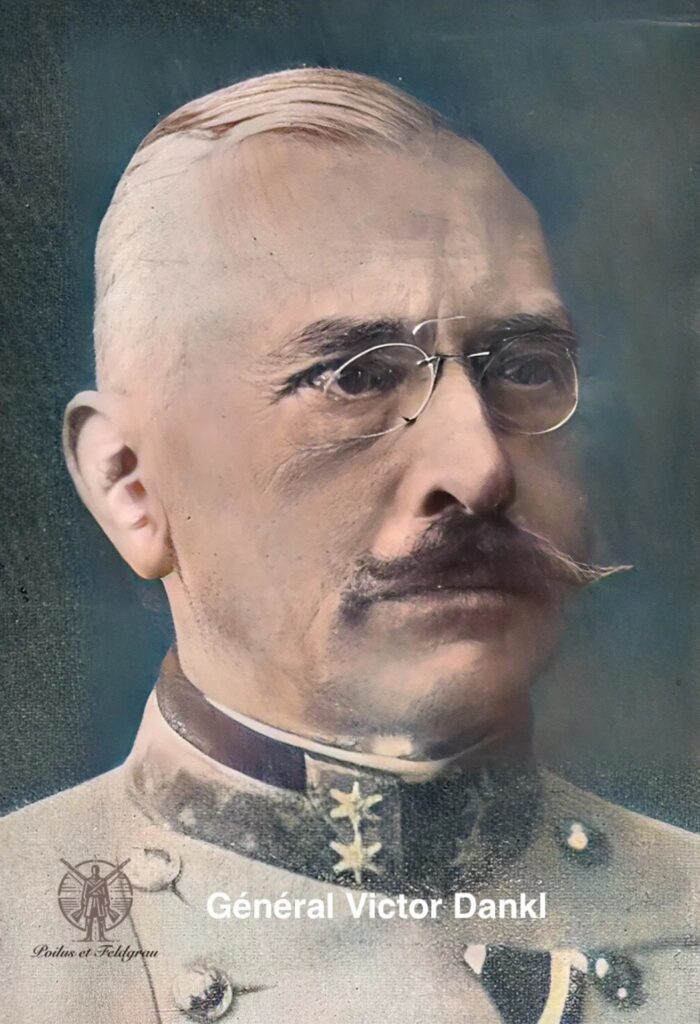 Le Général Dankl était commandant du 14e corps et commandant de la défense nationale du Tyrol et du Vorarlberg jusqu’à peu avant la guerre. Né en 1854, il est nommé à l’âge de 20 ans lieutenant au 3e régiment de dragons de l’Académie militaire de Wiener Neustadt. Le jeune officier fréquente l’école de guerre puis rejoint l’état-major. Nommé dans la ligne active, il devient chef d’état-major d’une division de cavalerie, puis chef d’état-major du 13e corps, plus tard chef de la direction de l’état-major général. Entre-temps promu au grade de général de division, il sert comme commandant de la 36e division d’infanterie à Zagreb puis à Innsbruck. Il s’était déjà distingué lors des grandes manœuvres de l’armée en 1908 et avait maintenant justifié sa réputation de grande habileté de manière remarquable face à l’ennemi.