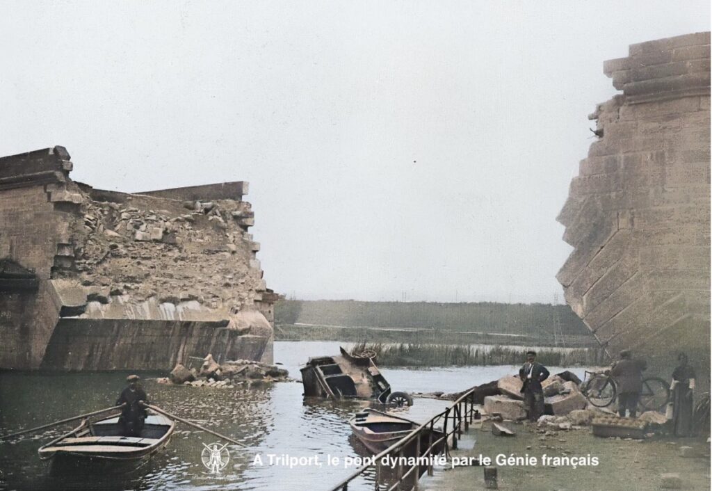Dans l’ignorance de la destruction du pont par les sapeurs du Génie français, une automobile allemande désirant se rendre à Trilport s’est abîmée dans la rivière.